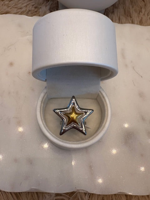 The AVELINE RING combines trendy style with everyday comfort. Crafted from hypoallergenic 316 stainless steel, its two-tone finish adds a modern edge while ensuring durability. The open design allows a flexible fit up to size 8, making it a versatile accessory for any occasion. Elevate your look with this sleek, star-accented ring that’s as stylish as it is comfortable.