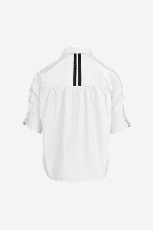 Women's Boxy Half Sleeve Button Up Blouse With Stripe Accents