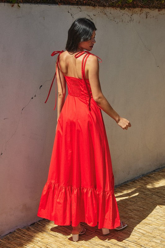 Cotton poplin maxi dress. Model is 5'8" and wearing size Small.